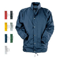 Capuche dans le col. Fermeture pressions métal + zip. Cordon base. Deux poches extérieures. 100% nylon. Doublure jersey gris 65% polyester 35% coton